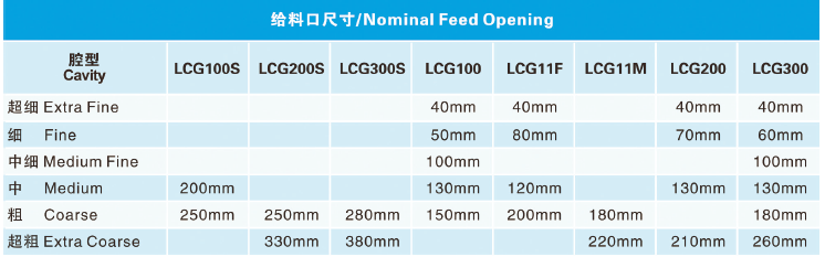 LUCKCOME LCG Series cone crushers can be easily adjusted for different production requirements. With a wide selection of cavities, the same crusher can be used in 2nd,3rd or 4th crushing stages, producing different end product sizes. The stroke change feature allows crusher through-