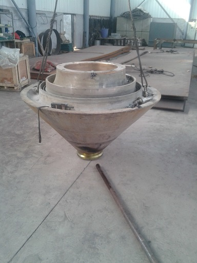 客戶HP500圓錐破碎機(jī)動錐體自行更換球頭時,由于安裝不到位,導(dǎo)致無法運(yùn)行,運(yùn)到我公司維修。由我司技術(shù)人員拆除球頭,重新安裝成功。
